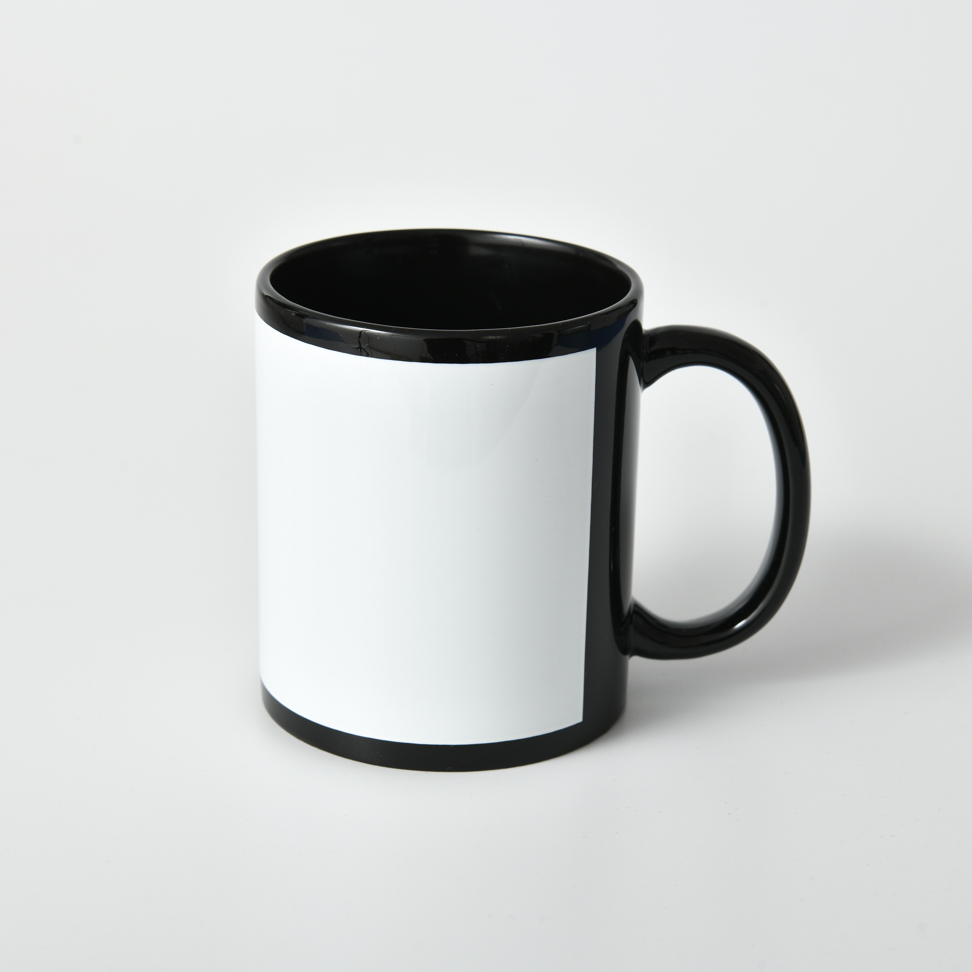 Այս կերամիկական բաժակը ունի սպիտակ տպագրության հատված սև մակերեսի վրա, որը նախատեսված է հստակ և որակյալ անհատական դիզայնների համար։